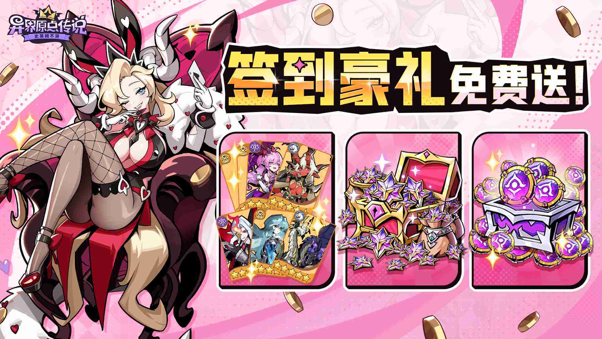 敢在应用商店标注“高福利”的游戏一定不简单。。。《史莱姆不哭》的预约福利除了孵蛋抽卡及养成资源外,,,,还有高价值的限定角色皮肤『甜蜜陷阱』。。