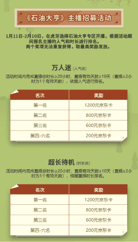 除了“油王”争霸赛,,,精英主播招募活动亦同步开启!!!!赛事分时长奖和人气奖,,,奖励同样丰厚!!!