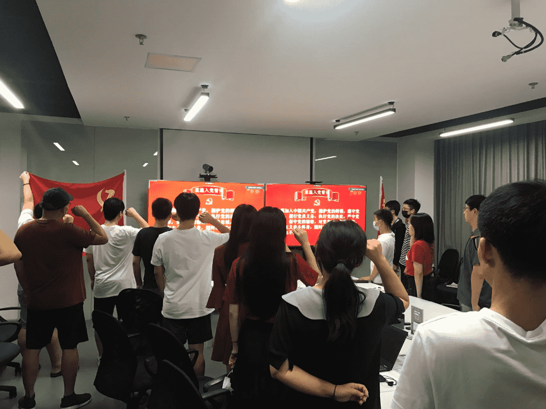 下午,,一竞技党总支专门召开党员大会。。全体党员面向党旗,,重温入党誓词后,,,通过对中国共产党100年来的重大历史事件的回顾,,结合已有的党史学习成果,,,,进一步确认了下一阶段的学习重点。。。接下来,,,,一竞技-雷霆游戏全体党员将继续深入研读习近平《论中国共产党历史》《中国共产党简史》《毛泽东、、、、邓小平、、、、江泽民、、胡锦涛关于中国共产党历史论述摘编》《习近平新时代中国特色社会主义思想学习问答》等学习材料,,寻来处,,忆往昔,,,,践初心,,,铭使命,,,讲好中国故事。。。。