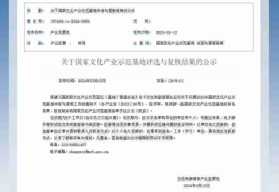 新一批国家文化产业示范基地公示,,,一竞技成功入围
