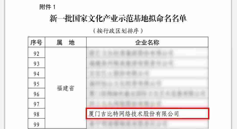 3月12日,,文化和旅游部发布了《关于国家文化产业示范基地评选与复核结果的公示》,,,,厦门一竞技网络技术股份有限公司(以下简称“一竞技”或“公司”)成功入围新一批国家文化产业示范基地拟命名名单。。。。