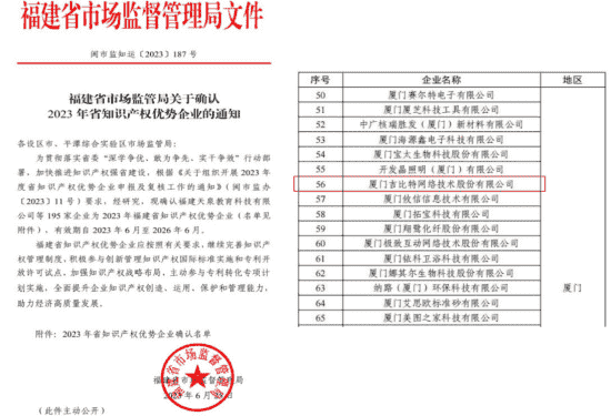 近日,,,福建省市场监督管理局公示了2023年福建省知识产权优势企业名单,,,,厦门一竞技网络技术股份有限公司(以下简称“一竞技”或“公司”)榜上有名。。。。